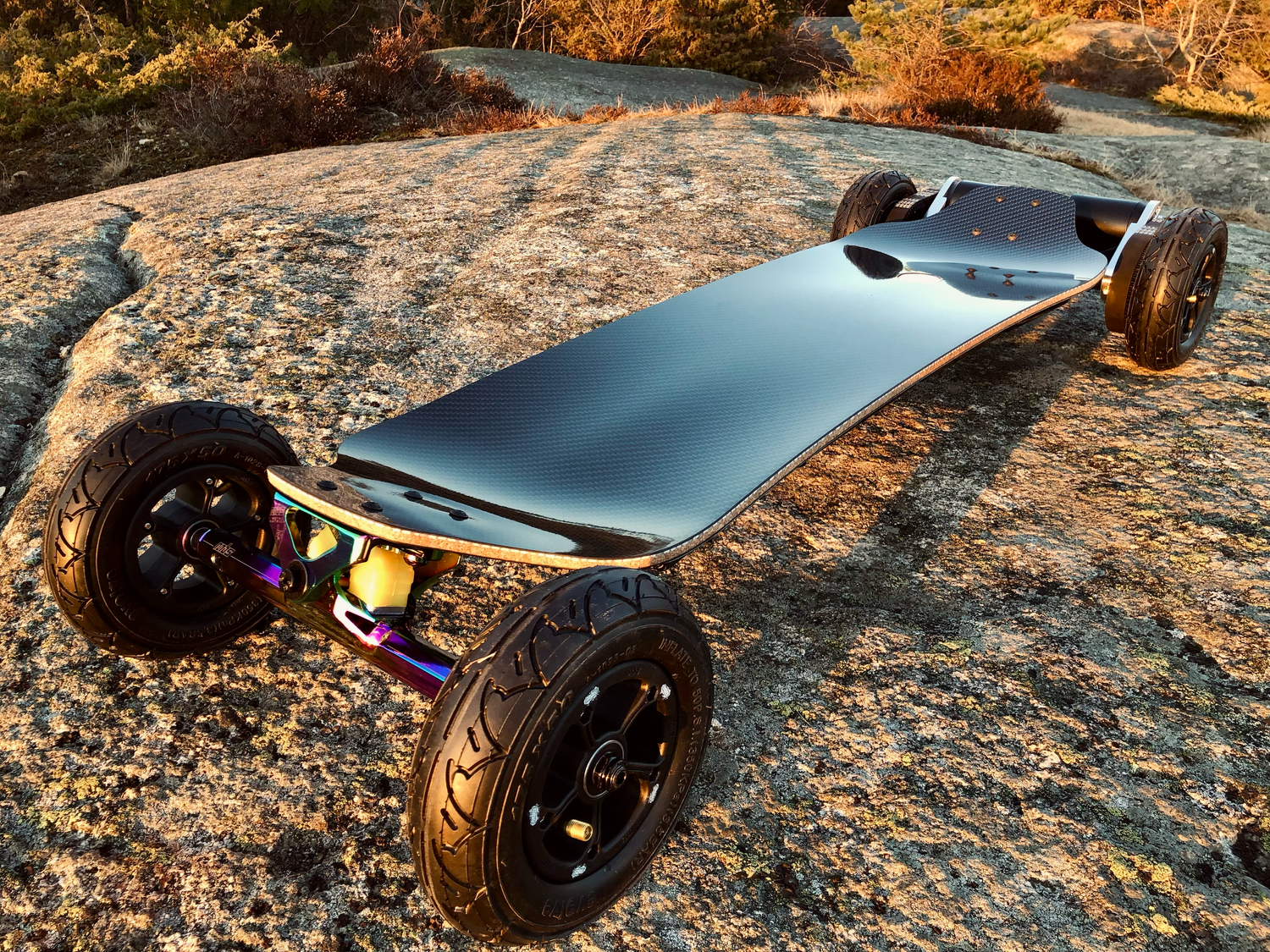 Strive towards the best possible ride! Built to last! Easy to say but hard to execute. Everything has been designed from the ground up starting with the deck and enclosure. Which to me is the heart and soul of a board. To best be able to control those characteristics it had to be done in-house and it had to evolve over time but that’s a story for another day. The final concoction is a deck made out of carbon fiber and epoxy with a core material made from a specialty cork paired with a synthetic core material, with built in reinforcement areas made from CNC milled aluminum. Multiple years of CAD & FEA simulations and a whopping 96 milling programs has been allocated to get to the point where it is today.